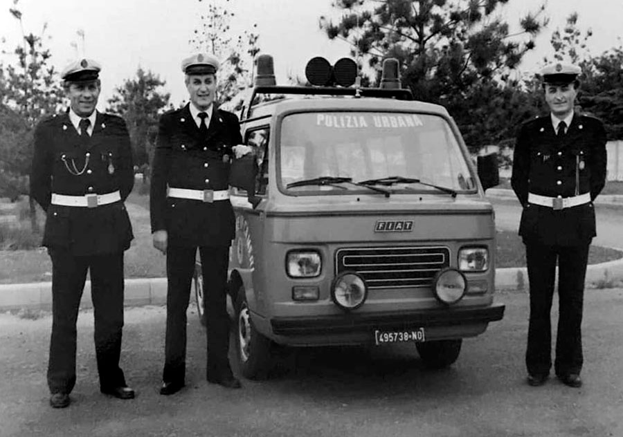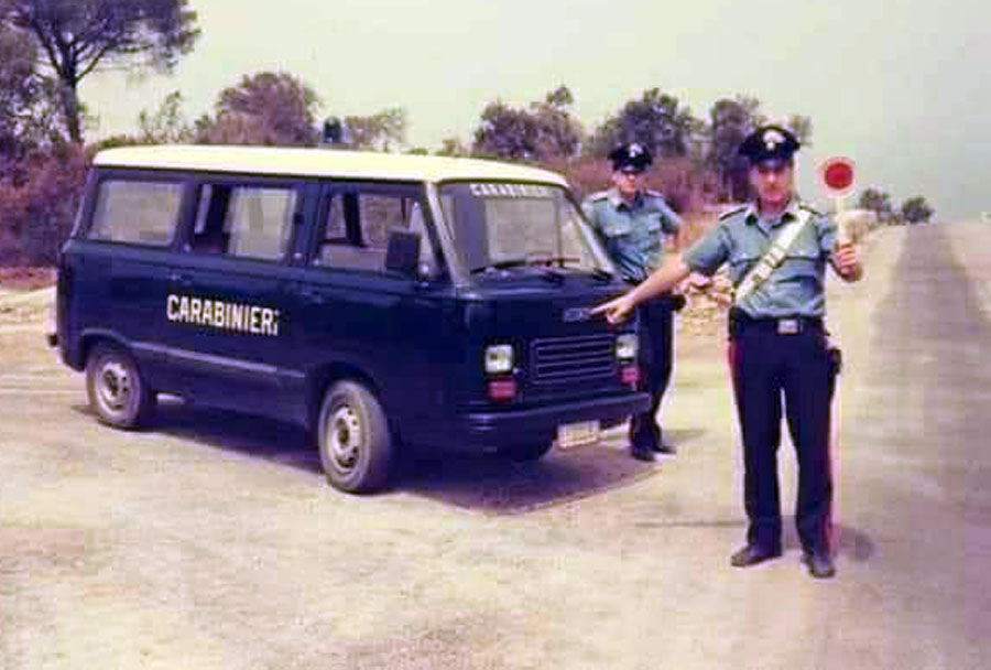 De Italiaanse politie had aan de verschillende uitvoeringen van de Pulmino een gewillig werkpaard. Ik vermoed dat vrijwel ieder politiekorps een of meerdere T's had. Ik vond een foto van zo'n auto en na een beetje zoeken had ik er een heleboel. Deze dus: