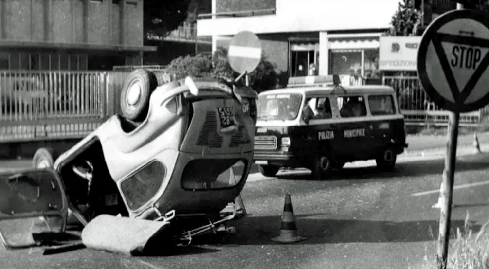 Dat je met een Fiat 850 Familiare met je knieen elke klap opvangt weet iedereen. En als dat een harde klap is komen er andere lichaamsdelen in de knel. In oktober 1970 verongelukte G. Fraccaroli ergens langs het Gardameer. Zijn familie herdacht hem met een foto in een kapel in de buurt: