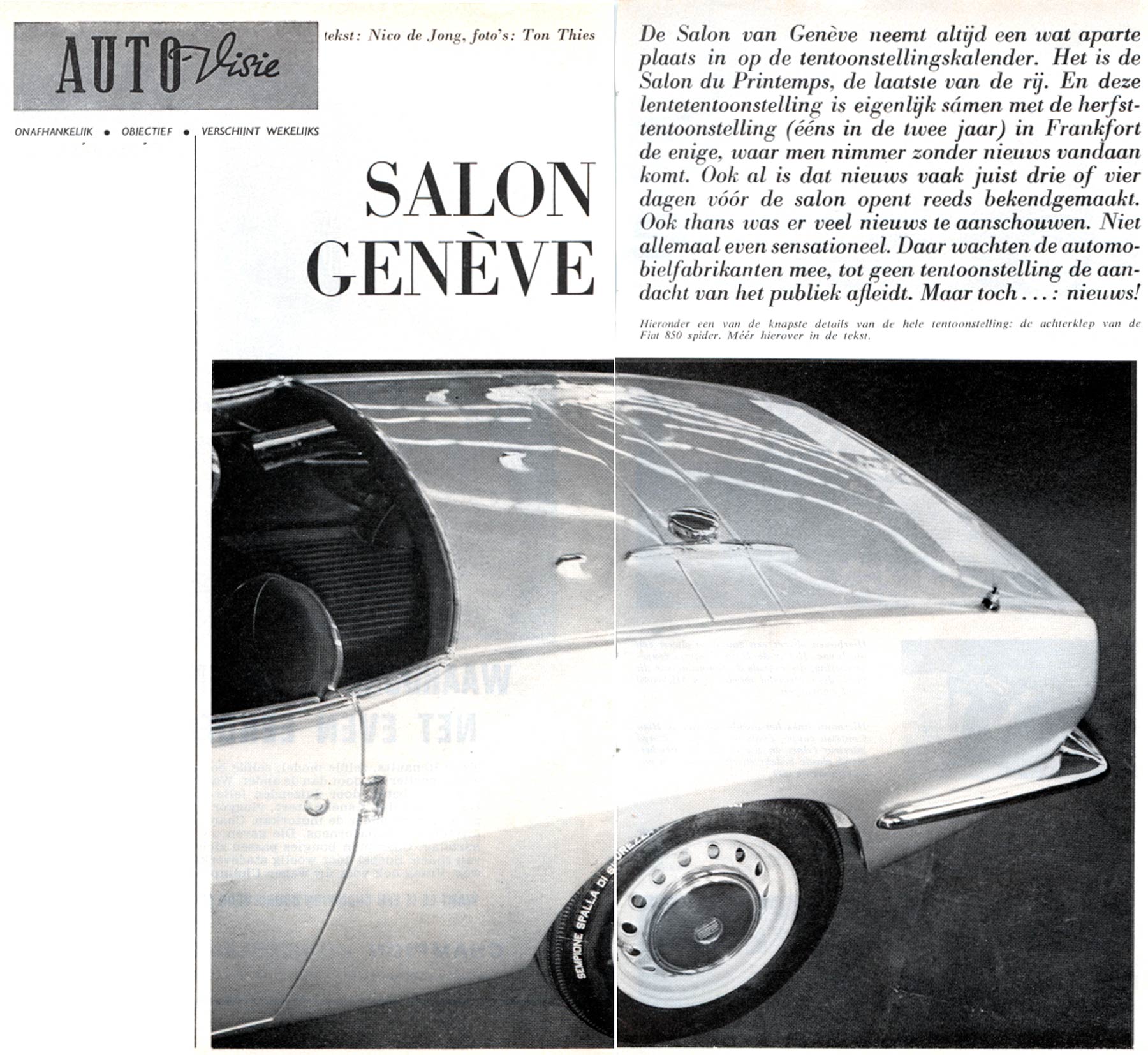 Toen in 1965 op het Autosalon van Genève de Fiat 850 Coupé en Spider werden gepresenteerd was Autovisie er snel bij om daar meerdere artikelen over te publiceren.