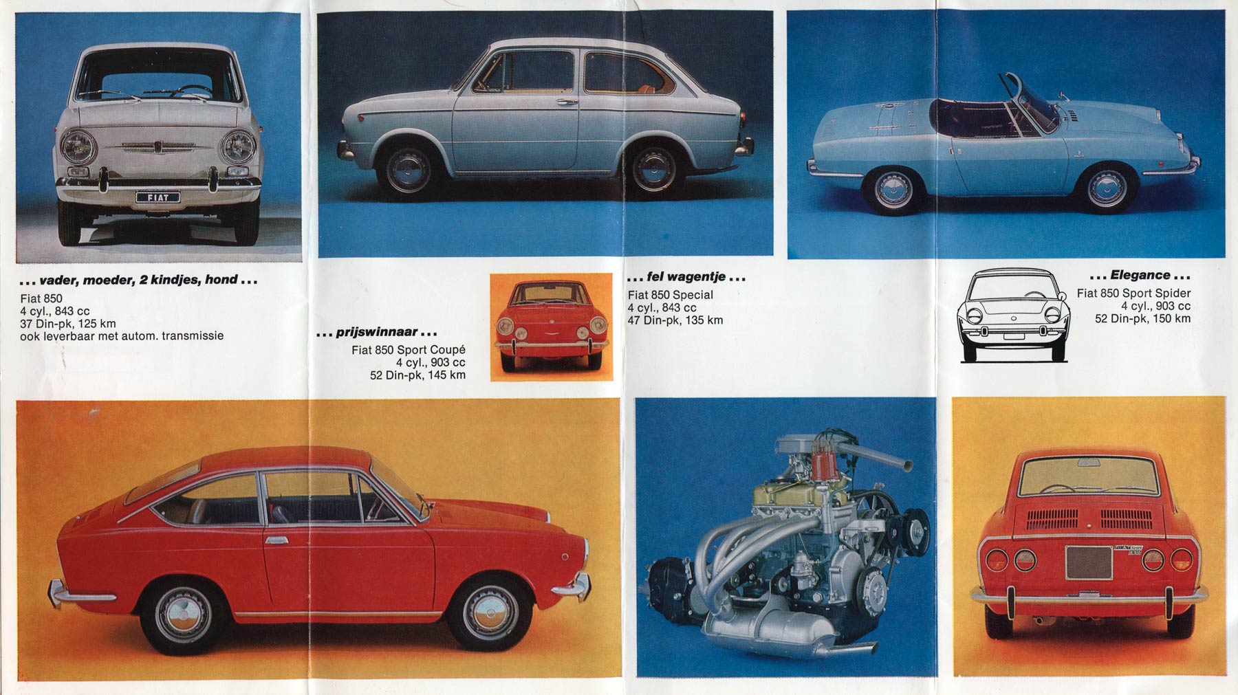 "Een wagen voor elke wens en welstand" dat was de lijfspreuk van Fiat in Nederland voor we allemaal Blijde rijders werden. Met die titel werden verzamelfolders voor de modellen uitgevoerd. De sfeer van de folders ademt die van de jaren 60: strak en spaarzaam gebruik van kleuren. Hier een paar voorbeelden hoe de Fiat 850 in 1964 werd gepresenteerd: