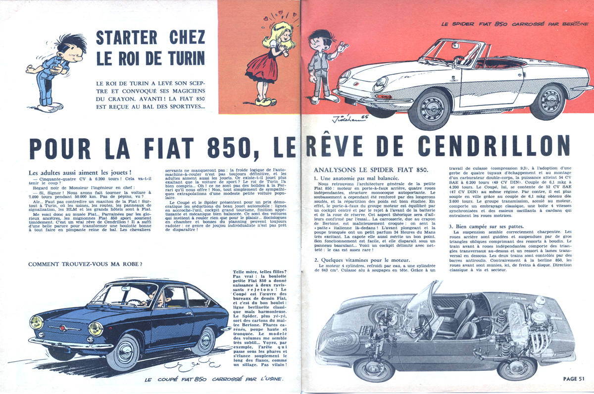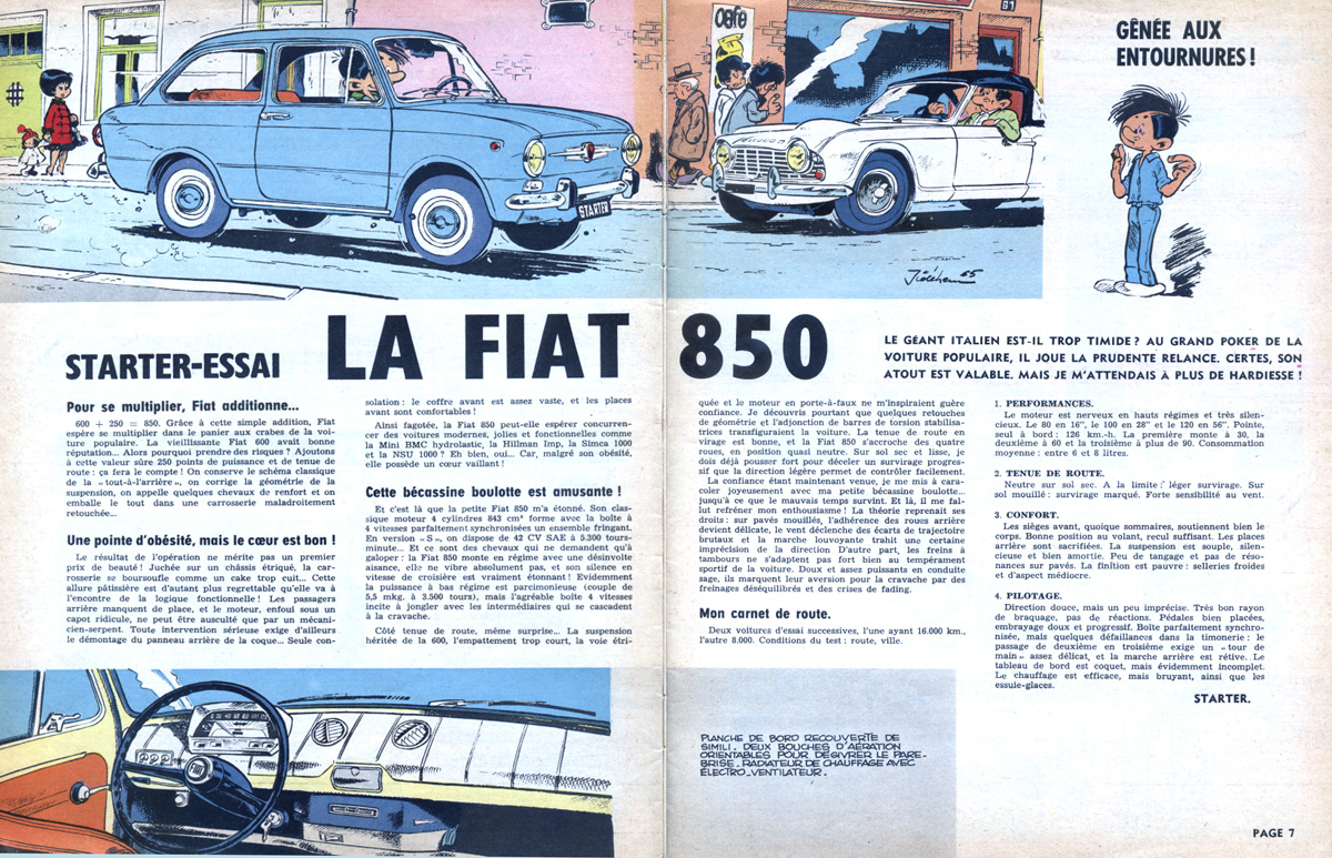 De Fiat 850 verscheen regelmatig getekend in allerlei tijdschriften. Niet alleen in de Donald Duck maar ook in Spirou (in Nederland "Robbedoes"), een leuk en leerzaam weekblad voor jongens en hun vaders.