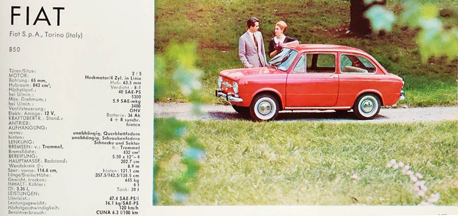 In 1965 werd in de nieuwste editie van Auto-Universum de Fiat 850 gepresenteerd. Een advertentie, een technische beschrijving én een test(je).