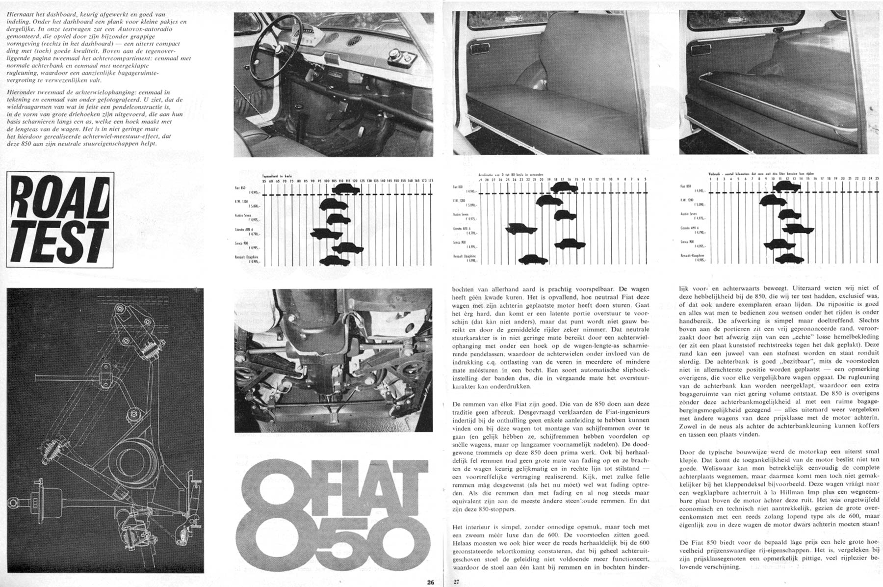 Een van de eerste Fiat 850's die in Nederland aankwam werd door Autovisie in 1964 aan de tand gevoeld in een heuse "Roadtest".