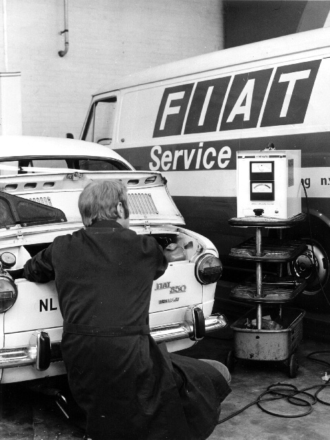 Midden jaren '60 werd het mogelijk om uitlaatgassen te testen. Ook Autobedrijf Staal had zo'n Sun tester en organiseerde met Veilig Verkeer Nederland een testactie. Iedereen welkom! Als persfoto werd deze afbeelding de wereld ingestuurd: (Die foto kwam bij Leonard Lang vandaan, zie de tekst op de 238)
