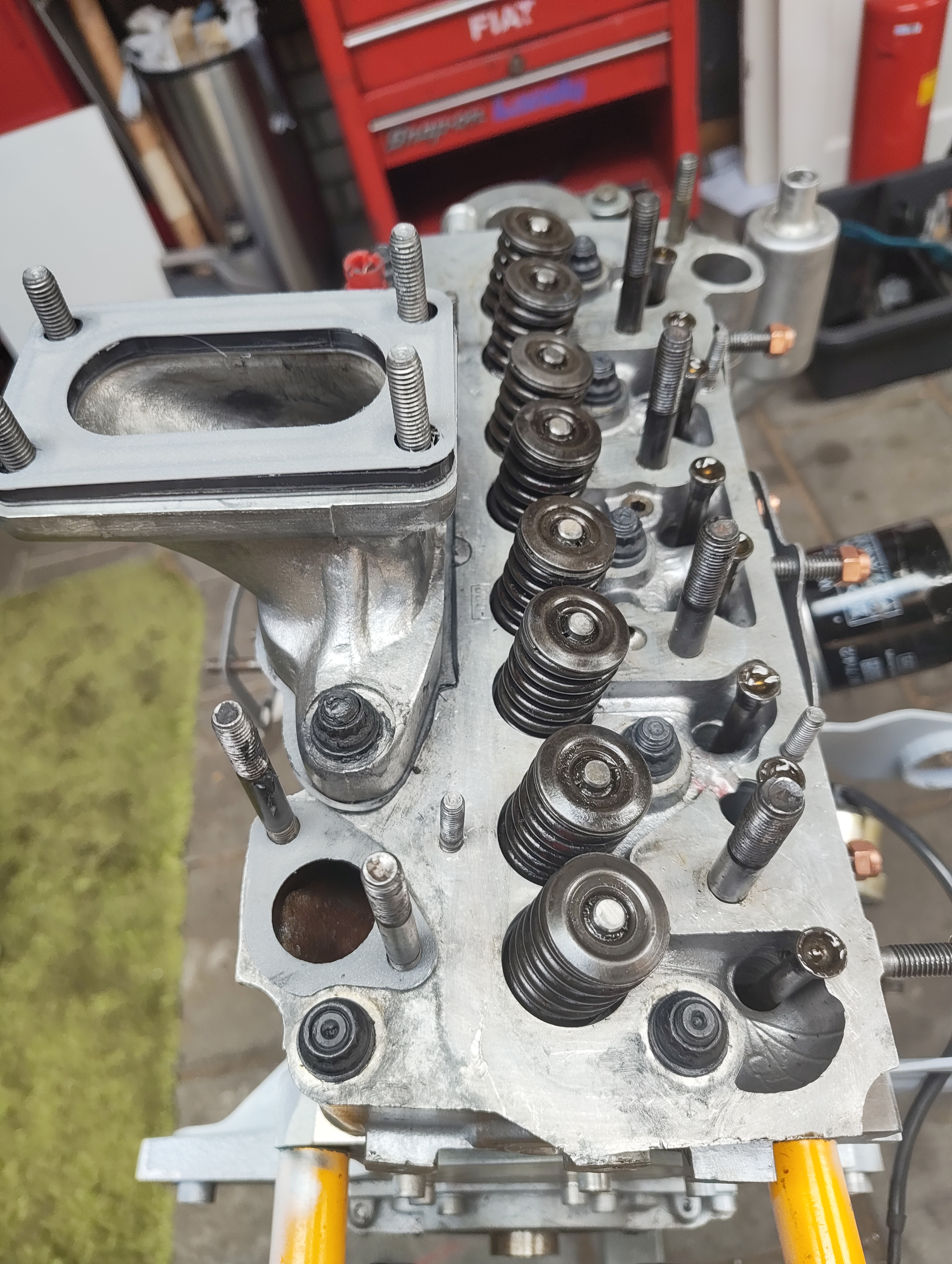 Ik heb de werkzaamheden aan blok en kop uitbesteed aan een bedrijf in mijn woonplaats. Daar werken zeer bekwame technici met veel ervaring. Zij hebben de kop omgebouwd naar loodvrij, grotere kleppen gezet en klepgeleiders vervangen. Ze boorden het blok op en bereidden het blok voor op de nieuwe nokkenas met een sneller profiel. Om de nieuwe zuigers te kunnen gebruiken op de bestaande drijfstangen moesten er fosforbronzen bussen worden gedraaid.