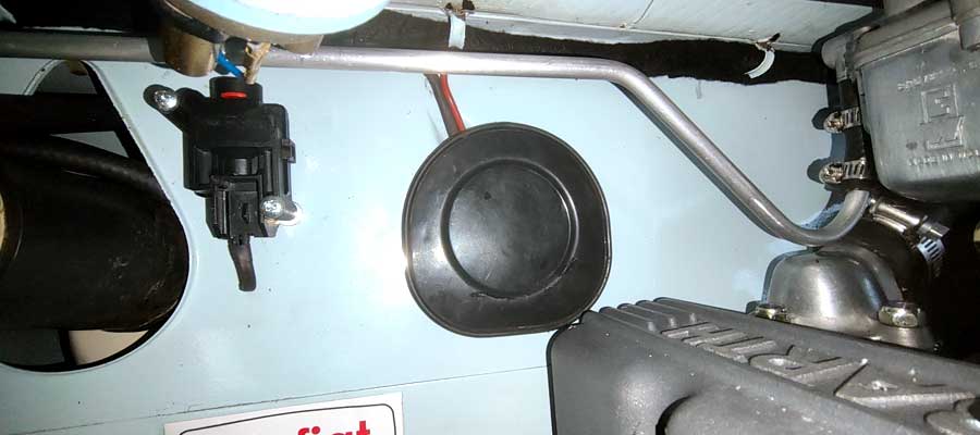 De intertiaschakelaar op het schutbord gemonteerd. Ik maakte ook een nieuwe brandstofleiding vanaf de pomp.