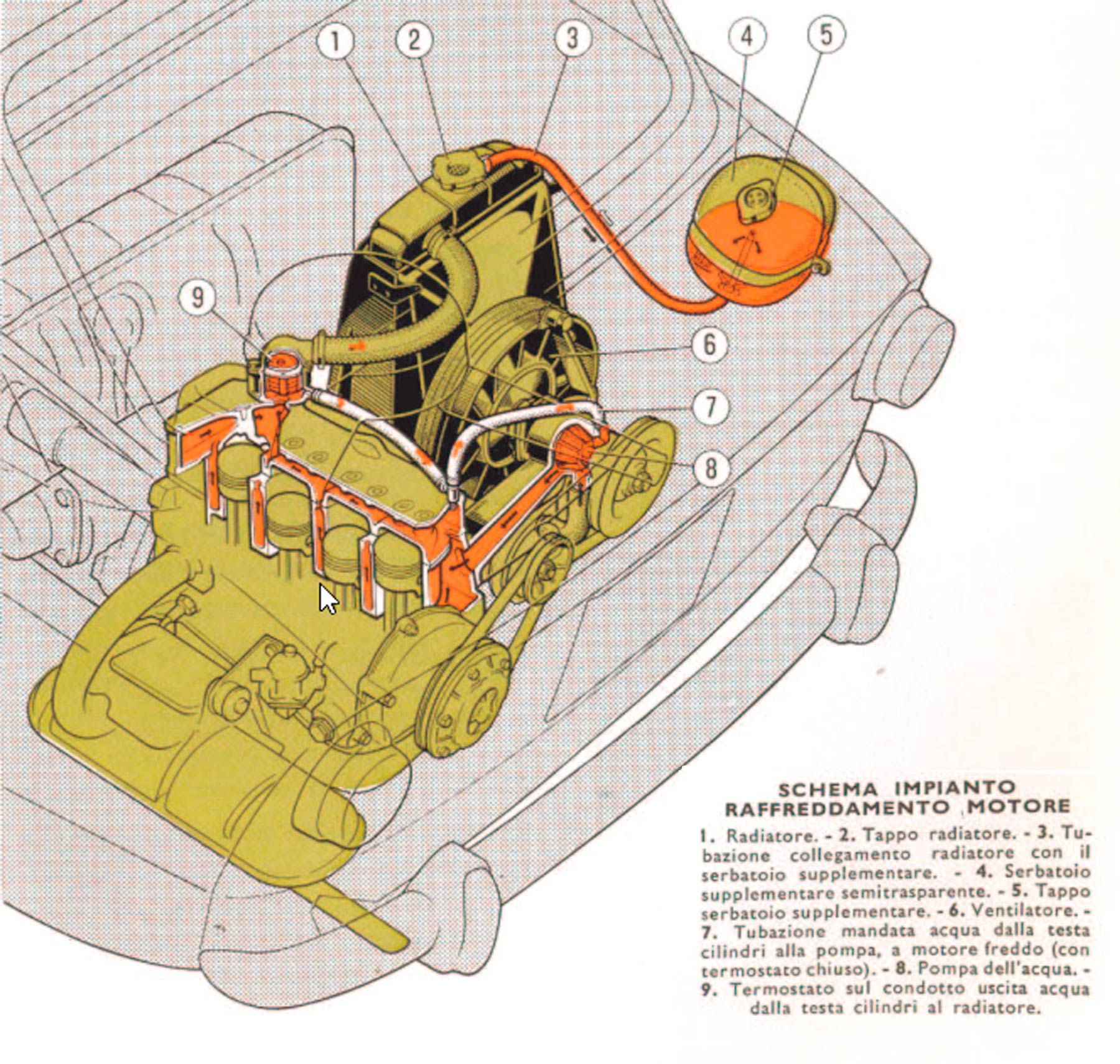 Belangrijk om te weten zijn de verschillen tussen de Fiat 850 en Seat 850 op het gebied van de motorkoeling: