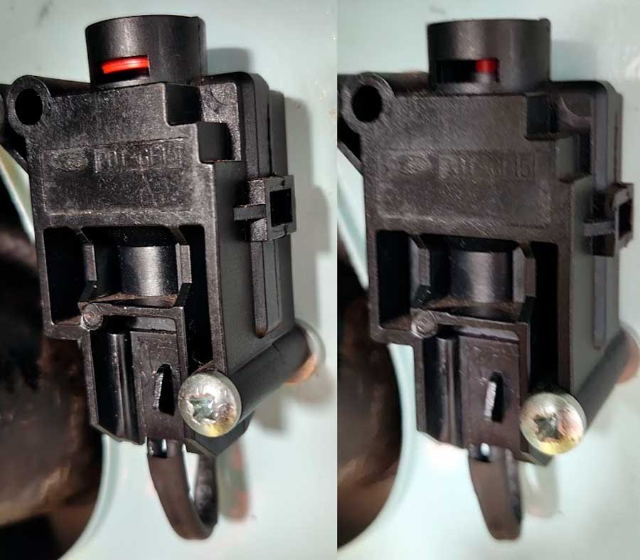 De mijne vond ik, weer gratis, bij het bedrijf naast mijn werkplaats. Zij sloopten een Ford Ka en ik wist waar die schakelaar gemonteerd was. Een uurtje later had ik de bedrading aangepast en de schakelaar gemonteerd. De schakelaar is gemonteerd aan de 12 volt draad vanaf de accu en doorgelust op pin 30 van het relais.